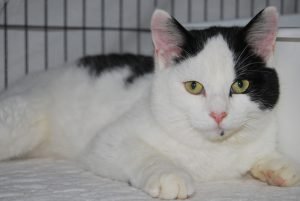 Monroe is the cutest of cats. He’s a sweet, gentle and a funny feline who just wants love and attention. Although a bit uncertain when he first arrived he soon made himself at home, and stretches out near the radiator or curls up in his comfy bed. He also enjoys playtime with toys (a new discovery) the wand toy and chasing down crinkle balls. He is very good with other cats. Monroe is a cuddler and learning that your lap is a great place to lay on for afternoon naps, and being carried is not such a bad thing. Monroe is ready to be adopted into his forever home, one that will welcome him into the family and keep him safely indoors.