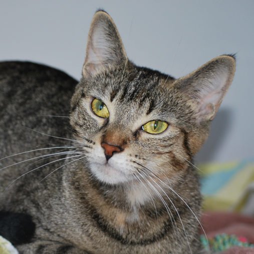 Mimi is a lovely little cat, slim, petite and very happy to be with people. She purrs and