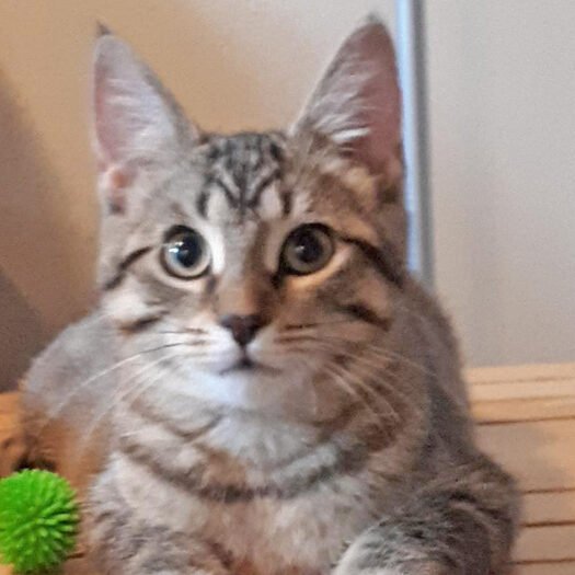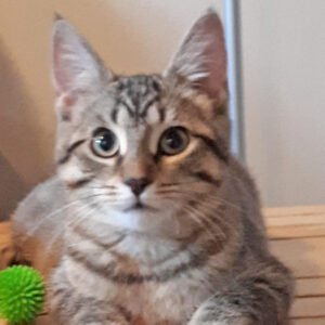 the laser pen light, exploring anything new and, of course, catnip mice. She can be found