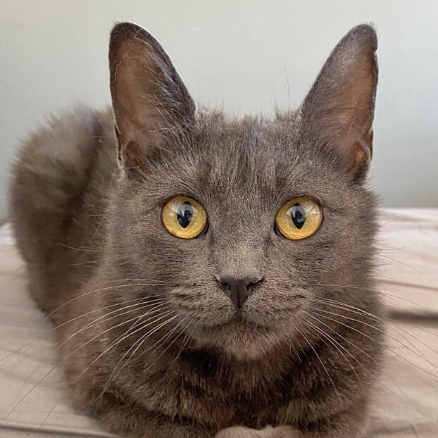 petite all grey kitty is an absolute perfect lap cat when you’re in need of cuddles. At night she