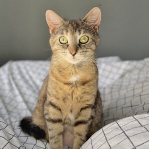 will never show aggression as she is quite gentle. This kitty is ready to be adopted into her