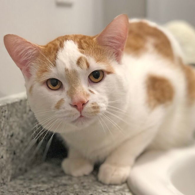 An email was sent to Pet Patrol with a picture showing a stocky white and orange boy sleeping