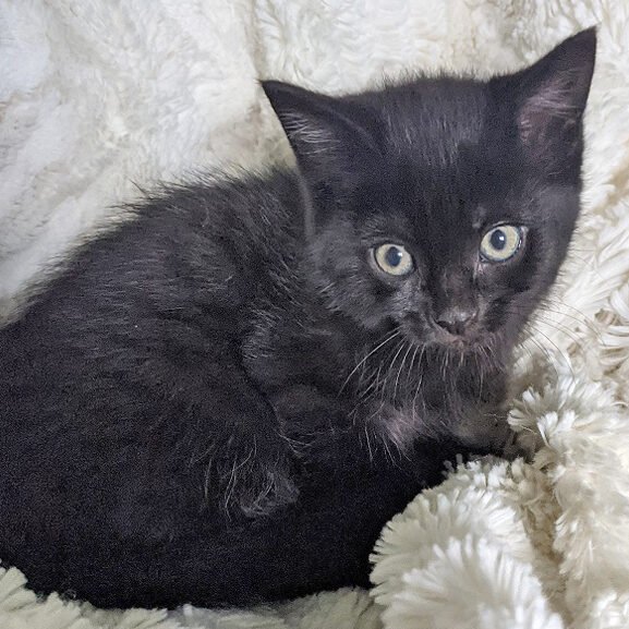 with her brothers. Her soft gaze and passive demeanor make her a greatly affectionate lap