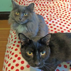 Tootsie and Mouse have been raised in a home with other cats and two dogs, one very large