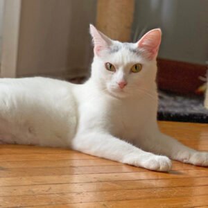 likes to chase the wand toy and nap in a nice sunny spot. She would do best in a quiet home