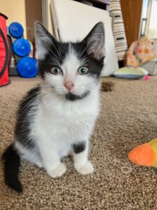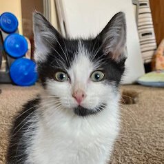 and so is wrestling, kitten style, with his siblings. Like all kittens he is curious and likes