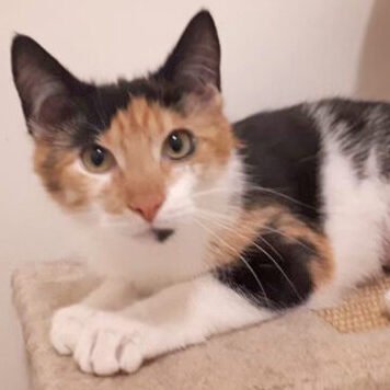 she’d caught a real mouse. This pretty little calico has become best friends with Anna at her foster home is ready to be adopted with her into their forever home.
