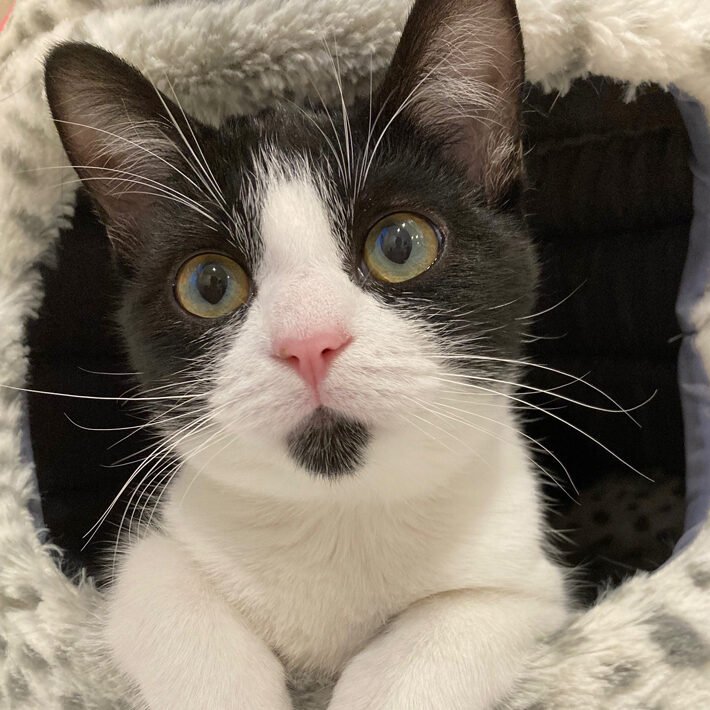 This adorable little black and white girl loves to be pet and cuddled, she is very affectionate