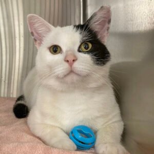 and would do well in a home with just one or two older cats or perhaps a passive dog (not