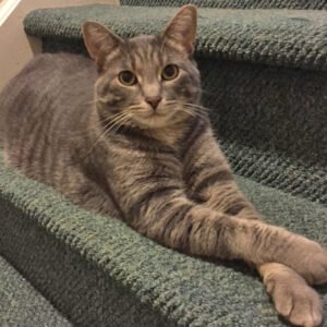 - He is an eight year old Gray Tabby with some White and Black markings.