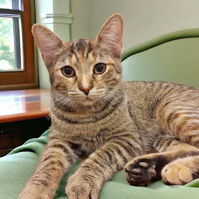 life. As an active kitty she likes to play with balls, chase string, and is an expert climber!