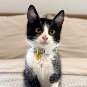 Meet Tye, a playful and affectionate kitten who is full of charm! Tye loves to leap after toys, proudly