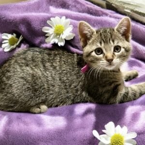 Petunia, a petite and gentle tabby, was first spotted wandering the streets of a small village—thin,