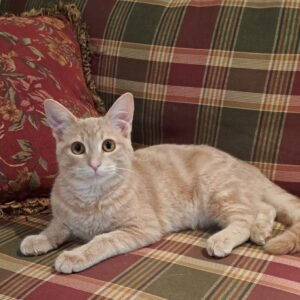 Tofu is a handsome boy with a big heart who just wants to be loved. Once he feels safe with you, he shows his softer side—rolling over for belly rubs and even reaching a paw through his enclosure for a little extra affection. He’s also full of playful energy and especially loves chasing after string wands. Tofu is the kind of cat who brings both fun and affection to his people. He’s eager to find a forever family who will cherish him and keep him safely indoors, where he belongs.