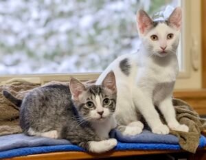 Place holder Kit and Kat are as close as can be—two best friends who do everything together. They cuddle, nap, and play side by side, and their bond is truly heartwarming to see. Both are affectionate and people-focused, happily curling up for snuggles or joining in on playtime with toys. They are curious and adventurous but also gentle, making them a wonderful fit for a loving family. Whether they’re chasing each other through tunnels, batting springs around, or simply purring in a cozy lap, Kit and Kat bring double the joy, double the love, and double the fun. Kit and Kat are ready to be adopted into their forever home together. One that will welcome them into the family and keep them safely indoors.