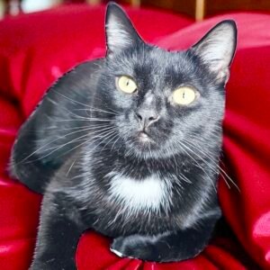 Rosy has blossomed into a sweet and affectionate girl who loves attention once she feels secure. While she was shy at first and took her time adjusting to indoor life, she quickly learned that people mean comfort and kindness. She melts for back scratches and gentle pets, gazing up with loving eyes as if to say thank you. Rosy also enjoys playtime and has a youthful spirit that shines when she’s with other cats—especially younger ones who can match her bursts of energy. With her gentle heart and affectionate nature, Rosy will make a wonderful addition to a loving, patient home. She is ready to be adopted into her forever home. One that will welcome her into the family and keep her safely indoors.