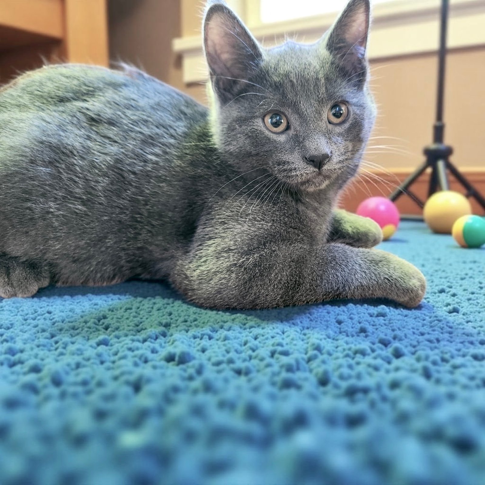 Lance is a playful little explorer who loves discovering every corner of his space. Whether it’s chasing a toy mouse, climbing the cat tree, or pouncing through a tunnel, this curious boy brings endless fun wherever he goes. When he’s done with his adventures, he’s quick to curl up for cuddles, purring softly as he settles in. Lance is great with children and other cats, making him the perfect addition to a lively, loving home. He’d love to be adopted with one of his siblings—playtime is always better with a partner in crime! Lance is ready to be adopted into his forever home. One that will welcome him into the family and keep him safely indoors.