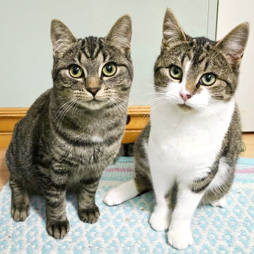 each other, wrestle, and then curl up side by side for cozy naps. Both enjoy affection, belly rubs,