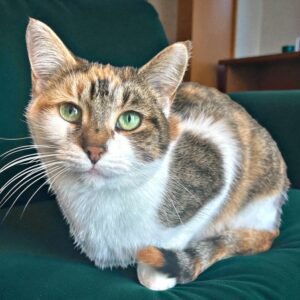 snuggling into your lap while you gently pet her or scratch her cheeks, purring contentedly the