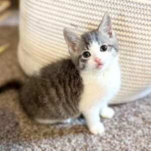 Meet Bram, a sweet little grey and white boy with the most soulful, heart ­melting eyes. Bram loves