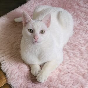 Sugar is a calm, loving girl who has truly mastered the art of relaxation. She’s a dedicated day napper, popping up a few times throughout the day for snacks and gentle affection. Sugar adores wand toys—especially in the mornings and at bedtime—and enjoys quiet evenings spent watching a movie with her people. At night, she sleeps on top of the covers, pressed close against your torso or leg, and insists on having your hand resting on her until she drifts off. If you stop too soon, she’ll gently headbutt you to remind you she’s not ready yet. Sweet, affectionate, and a little clever when it comes to treats, Sugar is content sitting nearby and may become a lap cat in time. Sugar is ready to be adopted into her forever home. One that will welcome her into the family and keep her safely indoors.