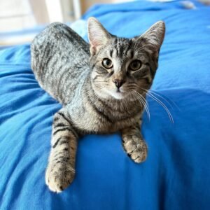 Beacon is the ultimate sweetheart human or feline, he loves quiet comfort and affection. Never far from other kitties in the home, you’ll often find him curled up with his brother or other fosters, their paws wrapped together. Beacon is still a kitten but very much an old soul. He is confident, gentle and easy going. He stares into your eyes, inviting affection with his purrs and rolling for tummy rubs. In your arms, he melts into a cuddly ball of fluff, lifting his head for chin scratches. When it’s time to put him down, he accepts it and will find his brother to keep him company. Beacon is ready to find his forever home. One that will welcome him into the family and keep him safely indoors.