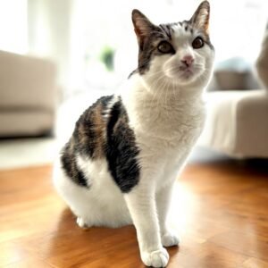 This affectionate, outgoing boy is all heart and charm. With his striking white and brown tabby coat, he’s as handsome as he is loving. He’s very friendly, enjoys human company, and isn’t shy about asking for attention. He loves playtime—especially chasing strings, batting around toy mice, and enthusiastically “attacking” crinkly grocery bags stuffed with other bags. When playtime winds down, he’s happiest cuddling up with his people, often choosing to nap nearby or curl up during movie nights, purring contentedly the entire time. Easygoing and affectionate, he would thrive in a home looking for a loving companion who enjoys both fun and quiet togetherness. He is ready to be adopted into his forever home. One that will welcome him into the family and keep him safely indoors.