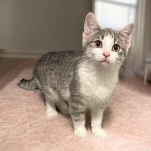 Genki is a lovely grey and white girl who adores cuddling with her sister, Ginsui. Once a nervous