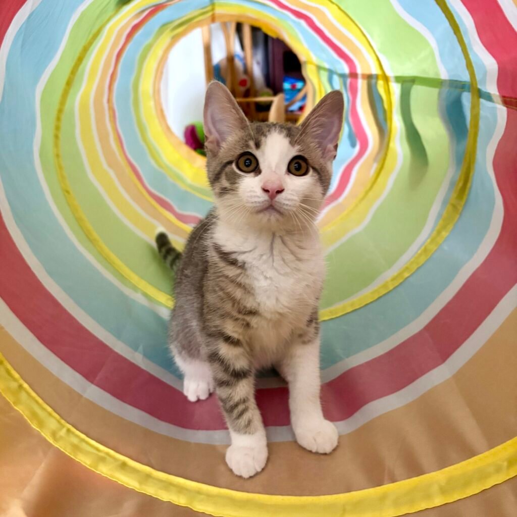 Rescue: Mau was found in a woodshed, calmly caring for her newborn kittens in a nest of pink insulation. Aman was drawn in by the cry of a kitten that had fallen deep into the insulation, too far for Mau toreach. He gently rescued the baby and offered Mau a soft, safe carrier tucked into […]
